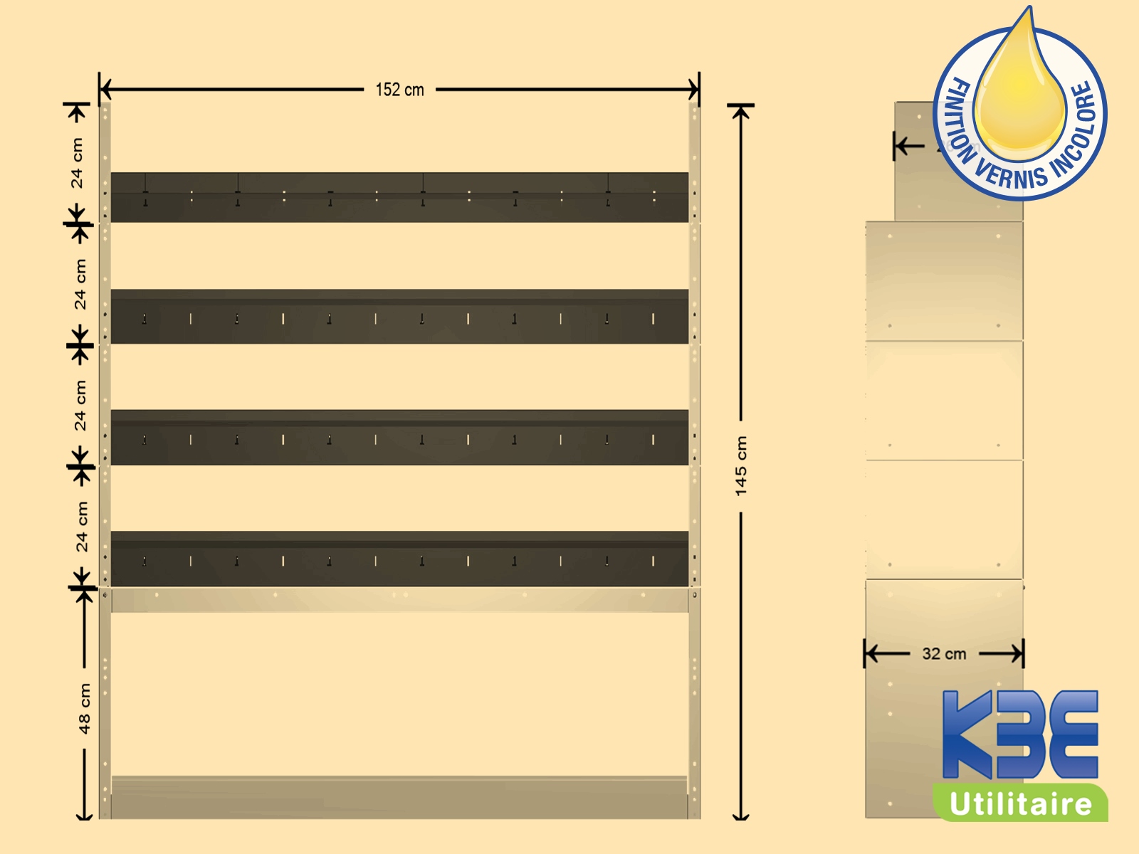 - Montage: Nos casiers se montent uniquement dans un véhicule déja équipé d'un plancher KBE