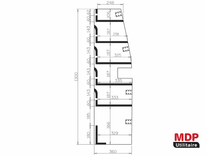 Casier sans Bacs Ar Gauche L1H1-H2 (L:91 x P:38 x H:127) pour Ford TRANSIT CUSTOM 2023