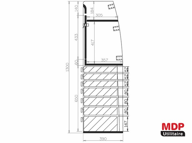 Casier Technique Avant Gauche Tous Volumes (L:53 x P:38 x H:127)