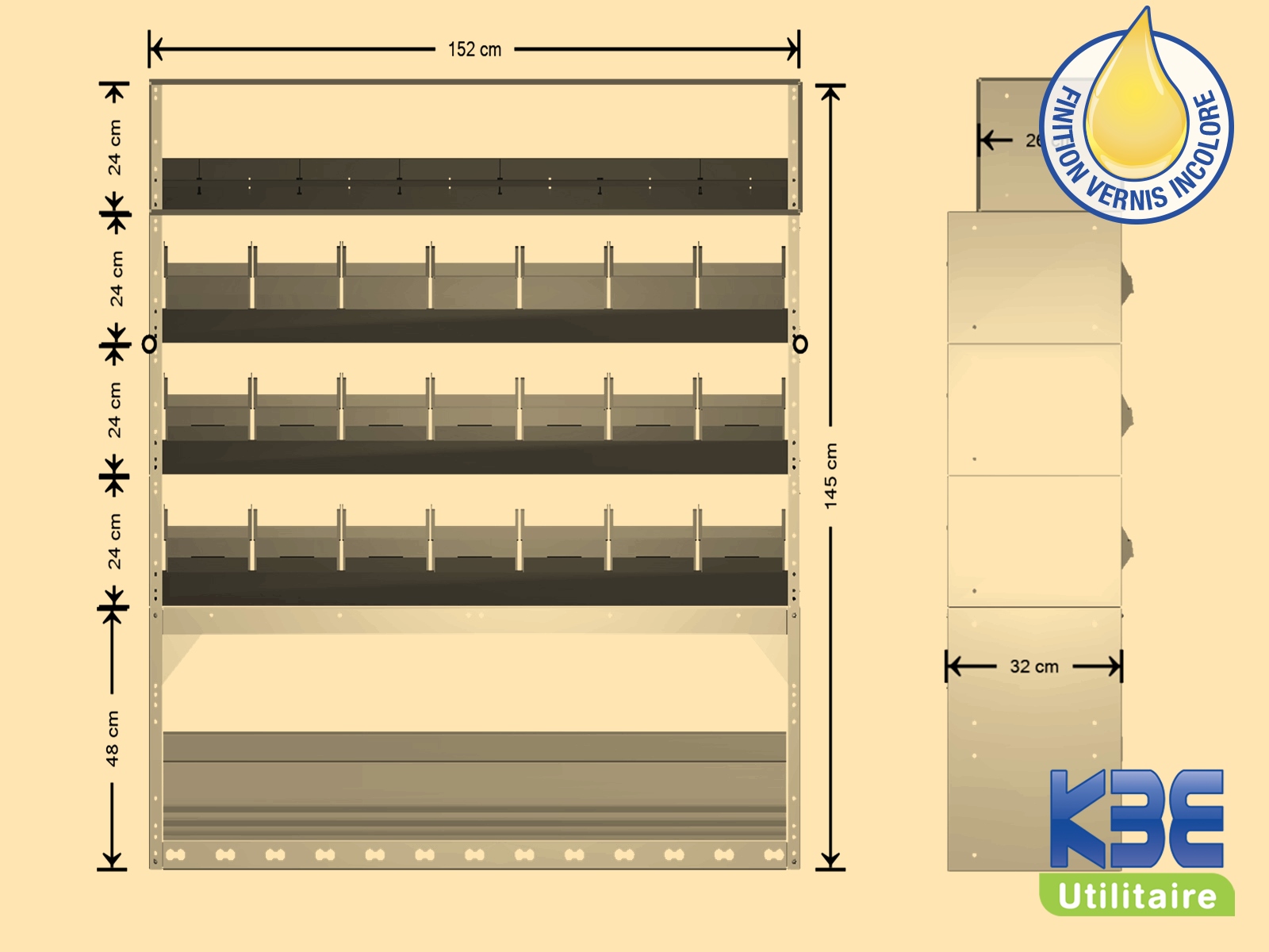 - Montage: Nos casiers se montent uniquement dans un véhicule déja équipé d'un plancher KBE