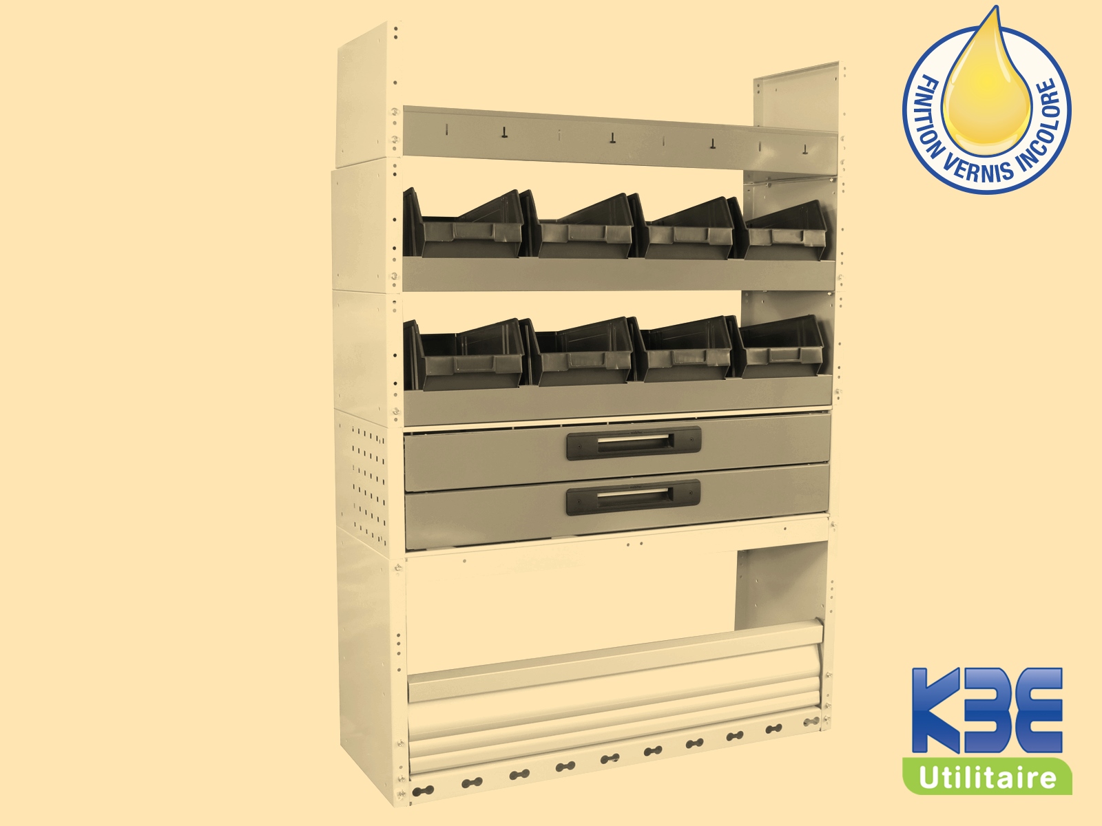 - Montage: Nos casiers se montent uniquement dans un véhicule déja équipé d'un plancher KBE