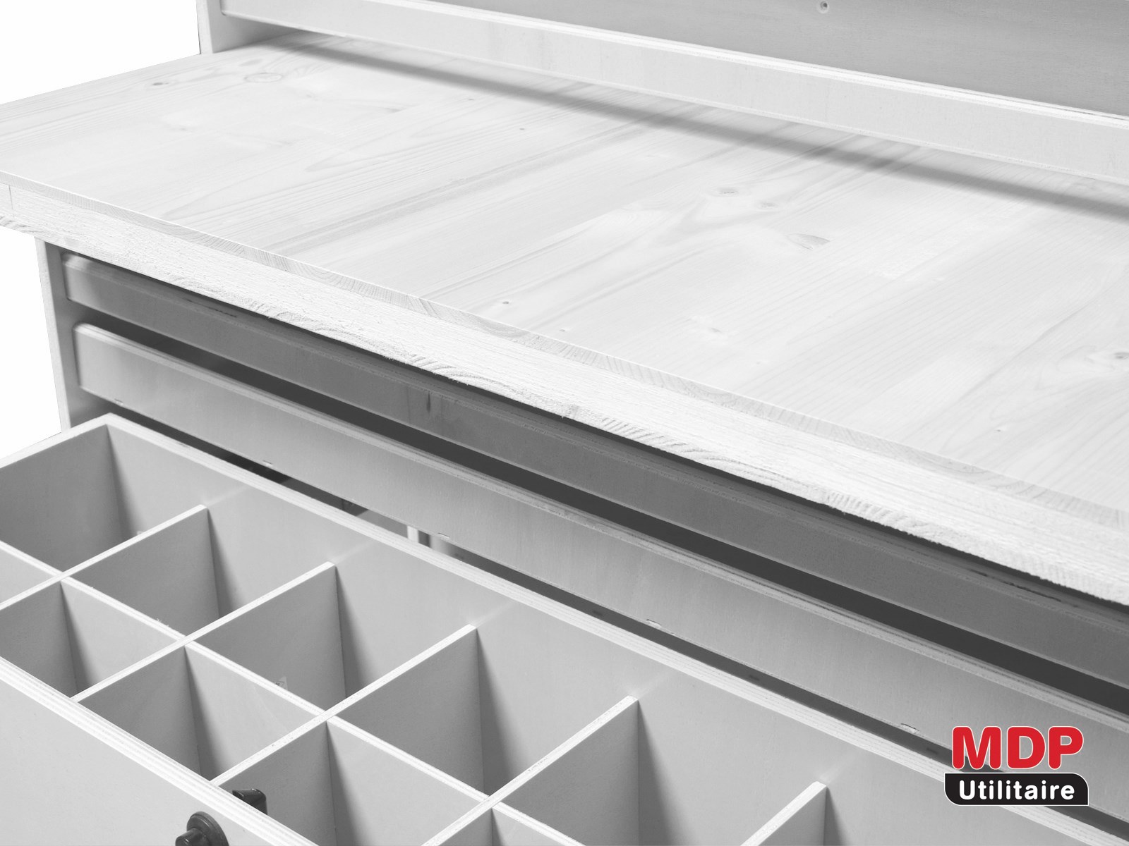 1 Tiroir avec Serrure, 3 Bandeaux Amovibles