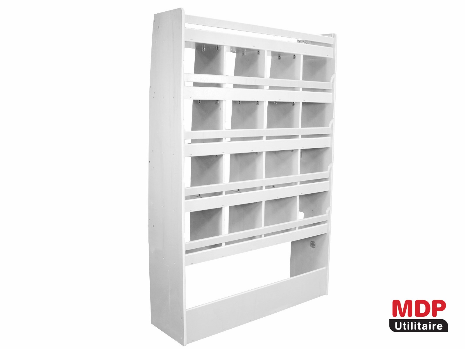 5 étageres, 12 intercalaires amovibles, 5 Bandeaux Amovibles