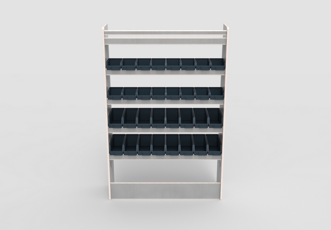 5 étageres avec 16 Bacs Moyen et 24 Bacs Grand, 1 Bandeau Amovible