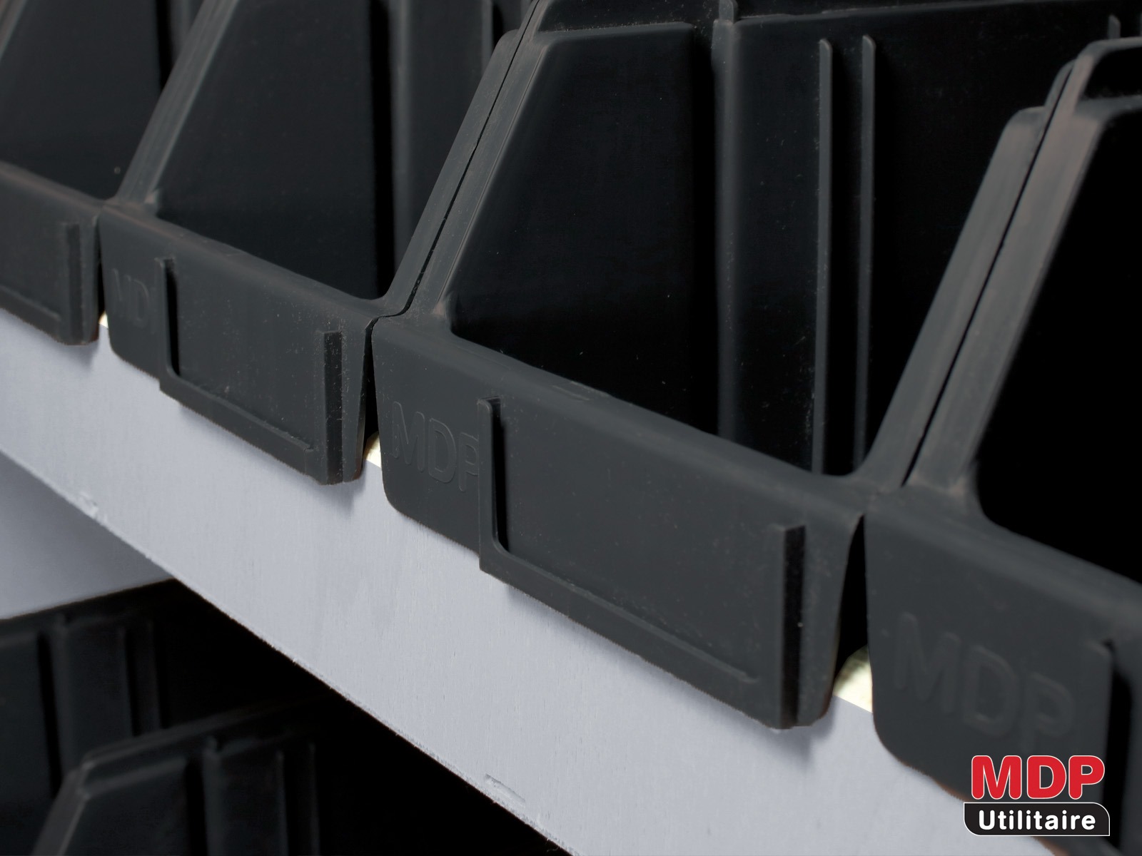 4 étageres avec 5 Bacs Moyen et 10 Bacs Grand, 1 Bandeau Amovible