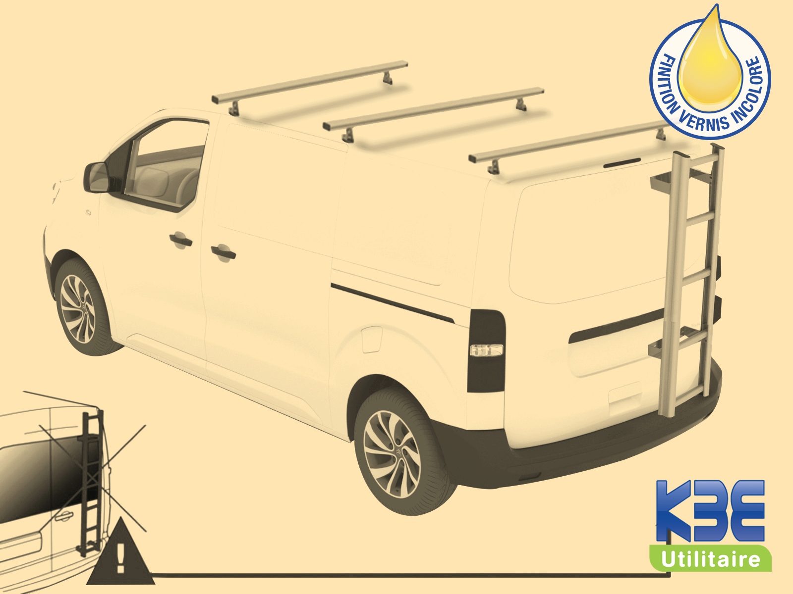 Kit Barres de Toit Alu + Echelle Alu - COMPACT pour Peugeot EXPERT 2016