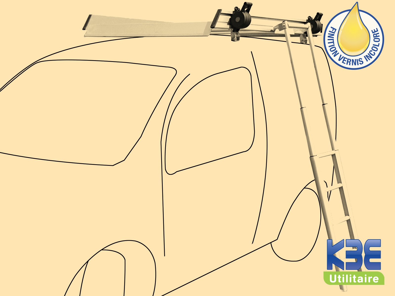 - échelle télescopique E4 en aluminium pour un acces latéral , livrée avec crochets pour une fixation sur la porte arriere … l'intérieur du véhicule