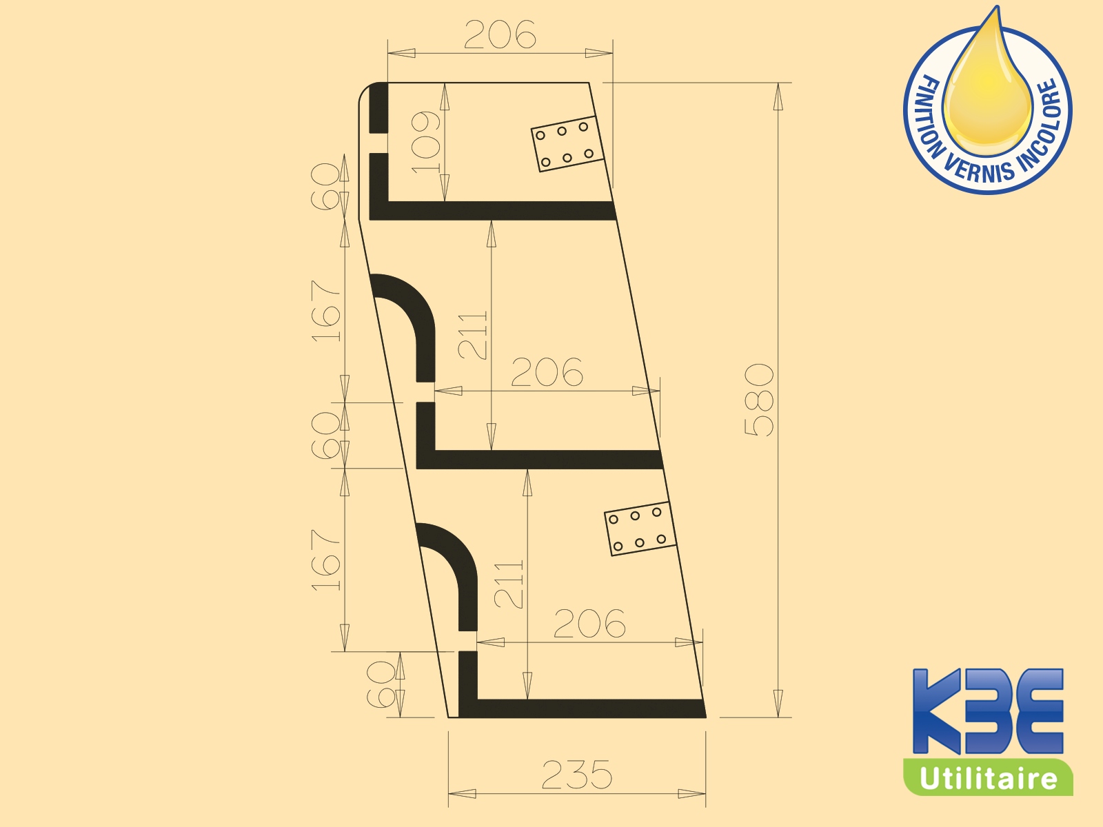 Le casier en Contreplaqué Vernis incolore 15 mm comprend :