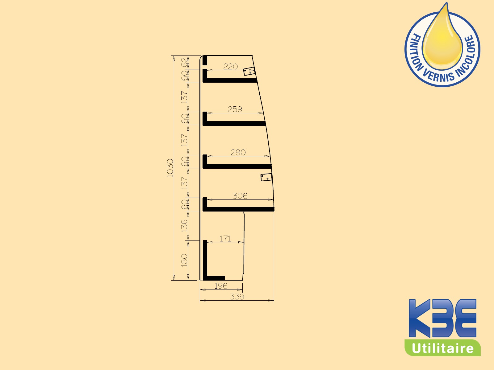 Le casier en Contreplaqué Vernis incolore 15 mm comprend :