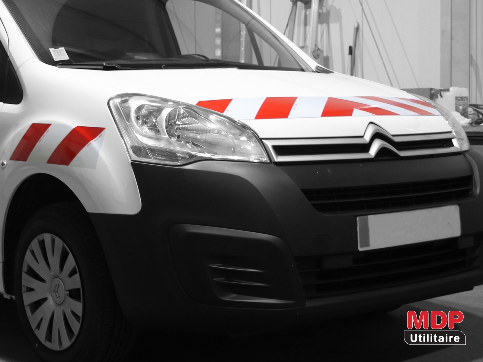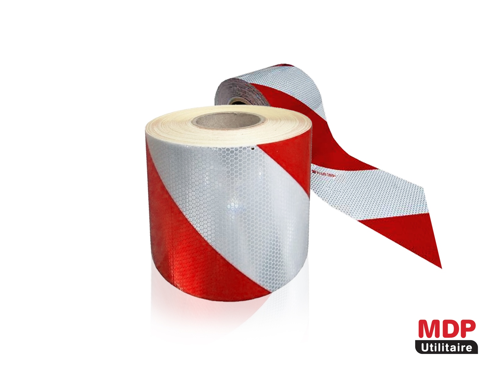- Bandes rétroréfléchissantes blanches + sérigraphie rouge