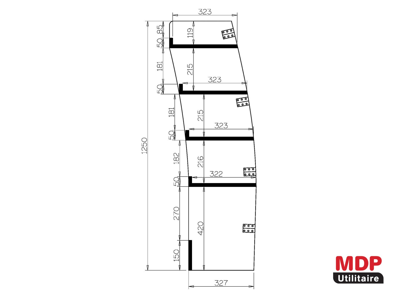 Casier avec Bacs Avant Gauche LONG (L:128 x P:35 x H:125) pour Volkswagen T5/T6 2004