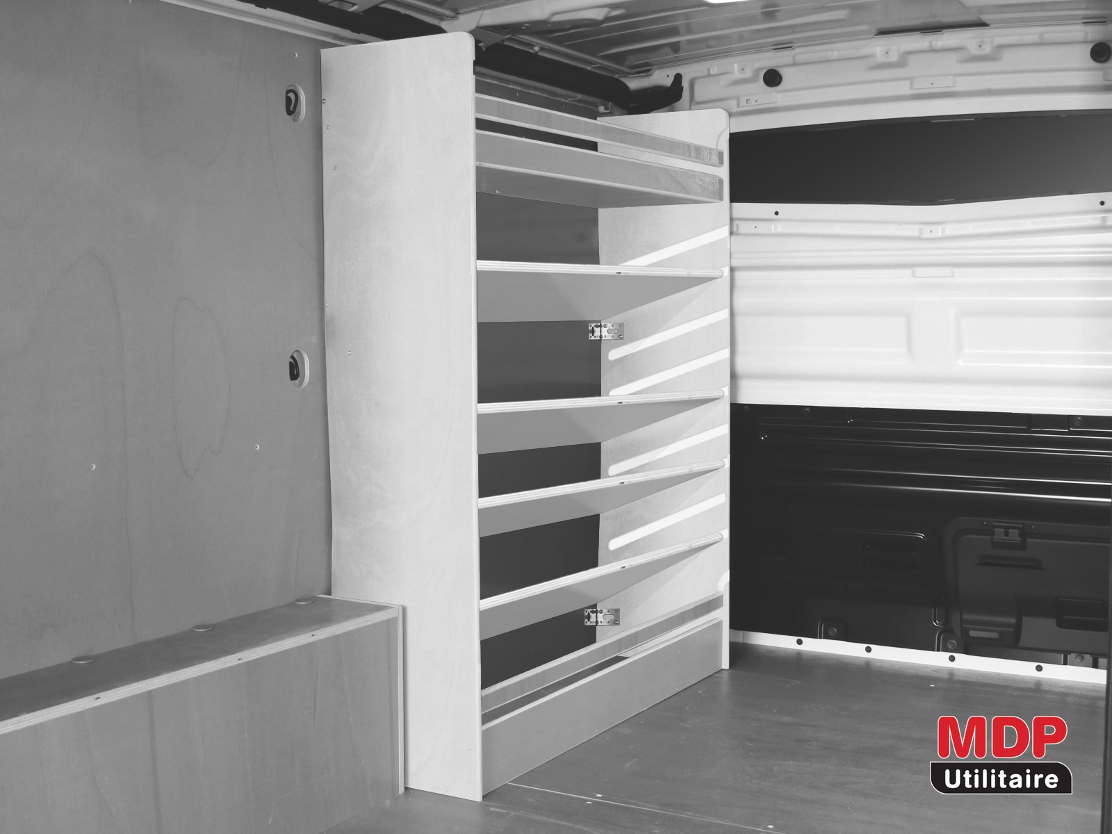 Casier Etagères Inclinées Avant Gauche LONG (L:128 x P:35 x H:125) pour Volkswagen T5/T6 2004
